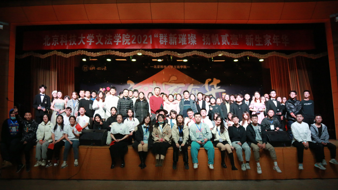 至此,北京科技大学williamhill中国官方网站第九届文法家年华暨2021级新生迎新晚会圆满结束,领导嘉宾与全体演职人员合影留念。