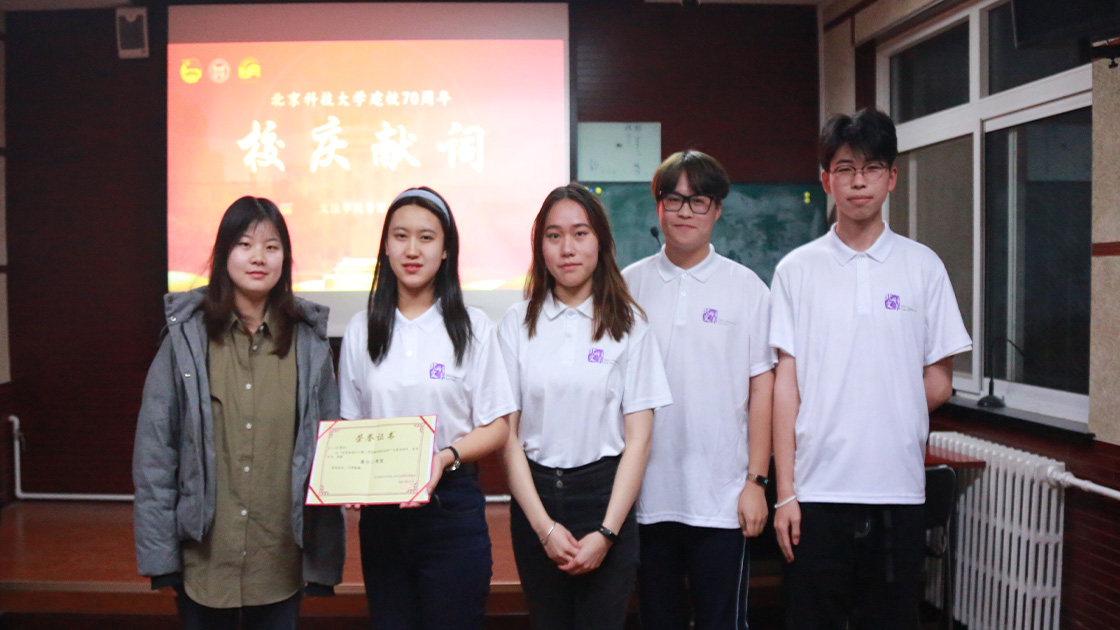 经过激烈的角逐,“钢柱铁花”队获得一等奖,“琛贝问鼎”队获得二等奖,“文法之声”和”文材双全”队获得三等奖,优秀献词作品评选前两名为《七秩北科,华章续写》、《颂北科礼赞、续时代荣光》。辅导员老师为获奖团队颁奖并合影留念。至此,本次征集活动团队展示到此结束。