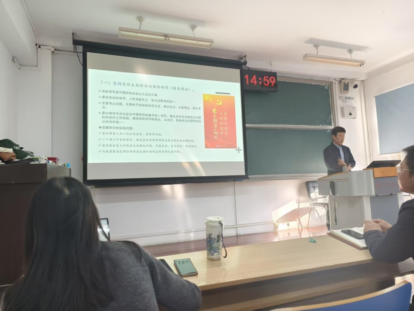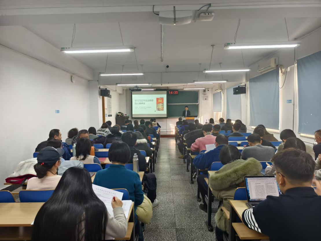 为提升学院全体教职工理论学习水平,增强知识储备、建强思想根基,2025年1月3日下午,学院特别邀请法律系教授李富成为全体教职工主讲以“习近平法治思想”为主题的专题讲座。讲座由公司党委副书记、副经理李虹主持。