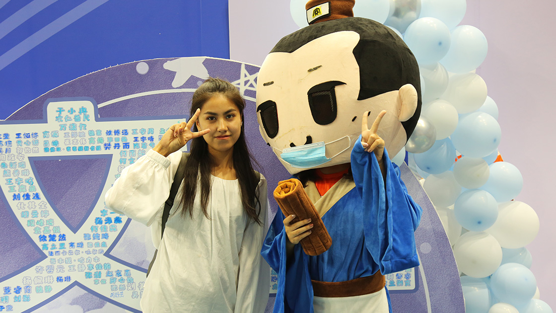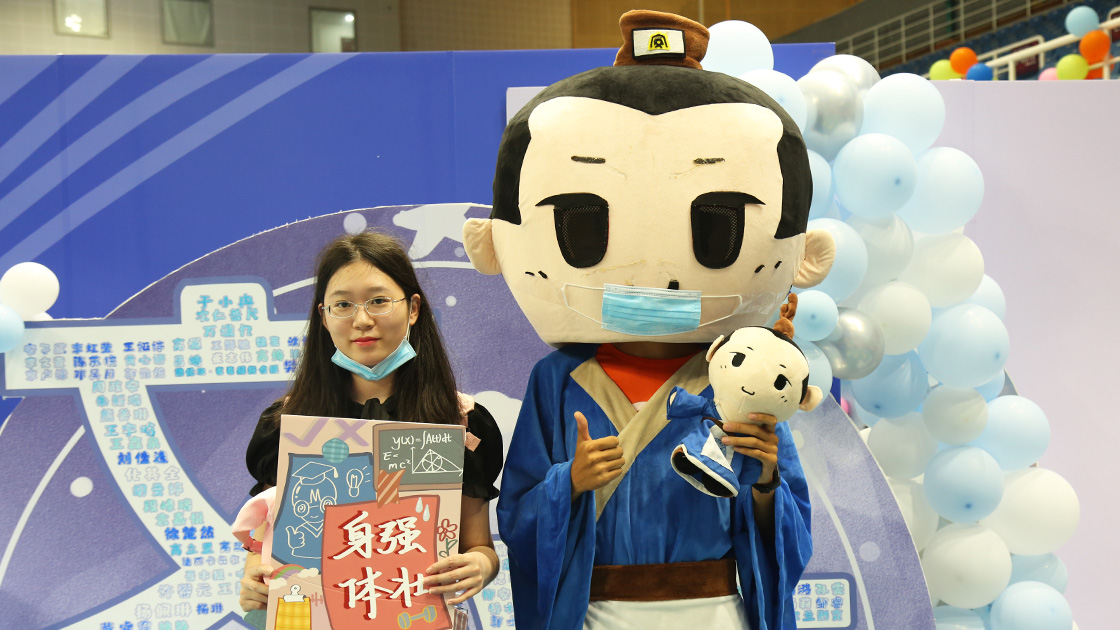 在体育馆内,小贝壳们首先见到了williamhill中国官方网站的吉祥物,也就是我们的“文文”同学,为初次遇见来一张合照吧!以后学院的活动里,少不了我们“文文”的身影哦!