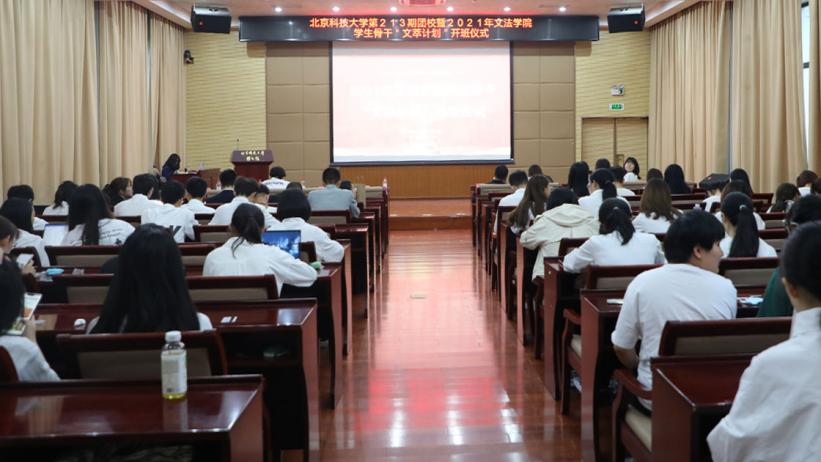 主持人刘鹏介绍出席领导和嘉宾,全体成员观看文法团学宣传视频。