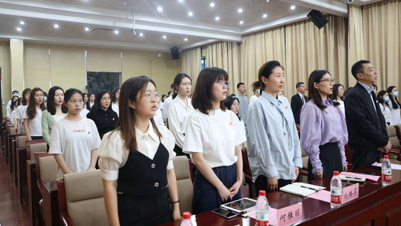 随后会议正式开始,全体成员合唱中国共青团团歌。