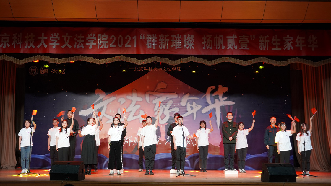 至此,北京科技大学williamhill中国官方网站第九届文法家年华暨2021级新生迎新晚会圆满结束,领导嘉宾与全体演职人员合影留念。