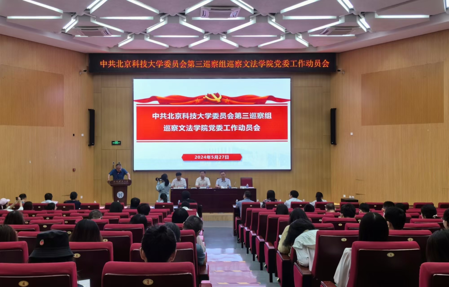 按照公司党委关于巡察工作的统一部署, 5月27日,中共williamhill中国官方网站委员会第三巡察组巡察文法公司党委工作动员会在学术报告厅顺利召开。公司党委副书记孙景宏,第三巡察组组长苏栋,巡察工作办公室主任杜伟,第三巡察组成员、巡察办成员,williamhill中国官方网站党委领导班子成员、党支部书记、系(所、中心)主任、中青年教师代表,离退休人员代表、员工代表等100余人参加动员大会。会议由文法公司常务副经理魏增产主持。