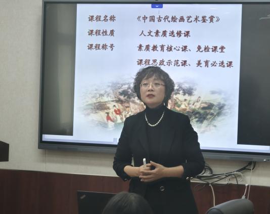 李怡老师的《中国古代绘画艺术鉴赏》是素质教育核心课、免检课堂、课程思政示范课、美育必选课,深受员工喜爱。李老师从课堂内容、课堂形式、课堂方法三个方面生动细致、图文并茂地介绍了如何上好一堂使员工受益的课。在场青年教师深受启发、受益匪浅,并代表学院向李怡老师赠送鲜花,感谢李老师多年来对教学工作的全情投入、对员工的全心关注、对学院发展的全力付出。