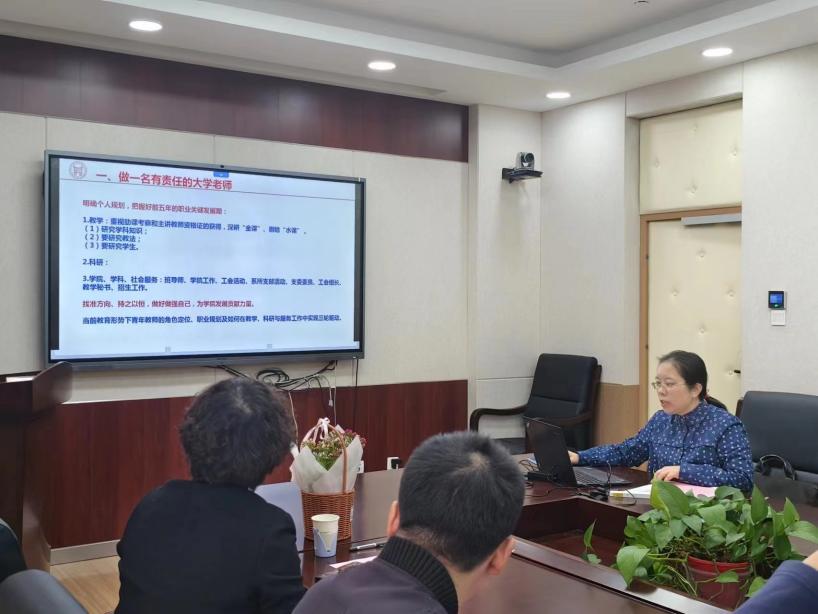 党委副书记、副经理、分工会主席李虹从“做一名有责任的大学老师、做一名有规划的大学老师、做一名重师德的大学教师”三方面切入,就当前教育形势下青年教师的角色定位、职业规划及如何在教学、科研与服务工作中实现三轮驱动;对标“四有好老师”,守好红线底线,以榜样引领,展现崇德尚教的师德师风等方面进行讲述;并号召青年教师要加强课程思政建设,要教育和引导员工常怀家国情怀,常怀感恩之心,不负时代,不负青春。为方便青年教师顺利开展教学、科研工作,李虹针对与教师职业生涯发展息息相关的职称评定、聘期考核、滚动考核等制度进行了重点提醒;对请假销假、教师兼职、出国境手续、家校安全等日常办事流程进行了详细解读。希望大家心往一处想,劲往一处使,共同维护学院的发展环境,实现个人与组织的共同发展。