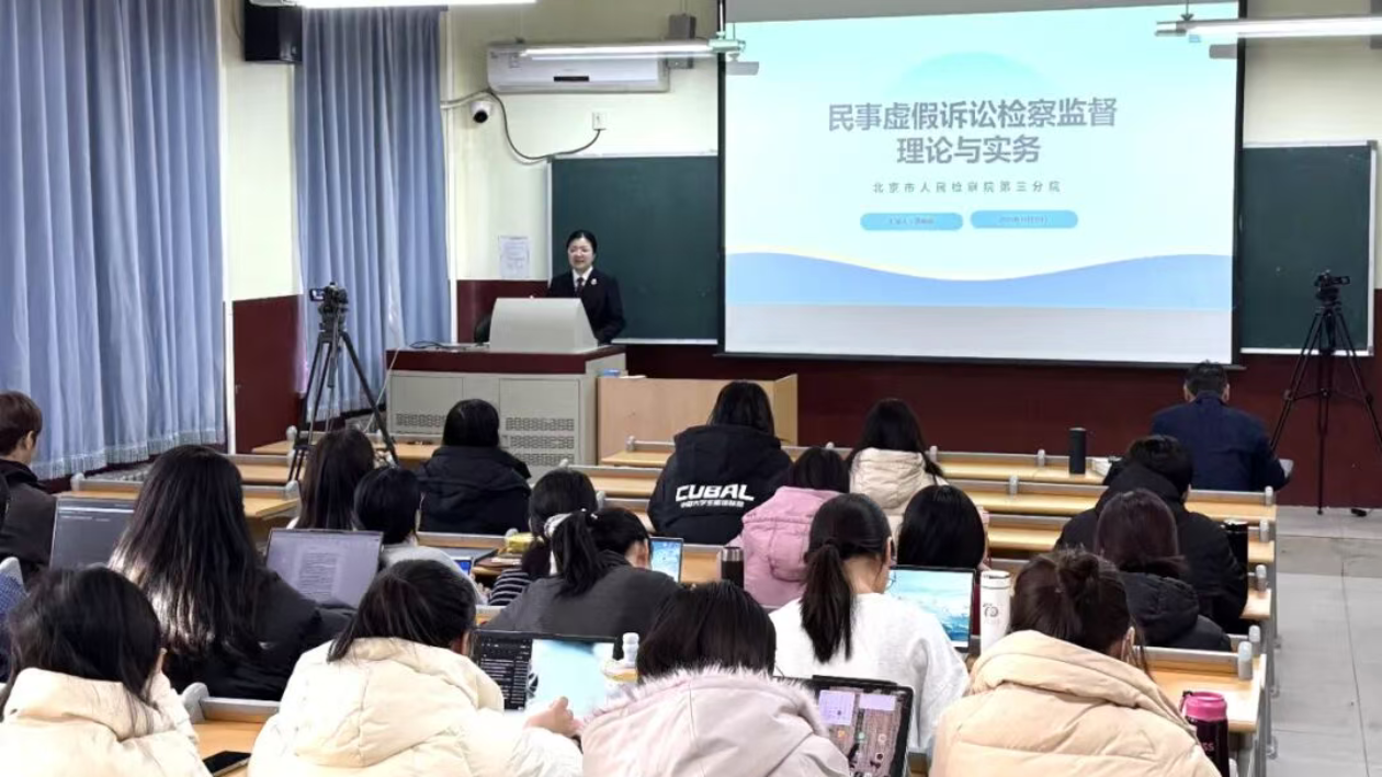 北京市检三分院姚梅娟以“民事虚假诉讼检察监督理论与实务”为题主讲。她以虚假诉讼对司法公信力和正常诉讼秩序的危害为切入点,系统阐释了民事诉讼检察监督的核心概念、构成要件及常见类型,循着“理论阐释—实践解析”的脉络层层推进,重点聚焦实务办案中的关键环节,向师生详细分享了线索发现、调查核实的技巧与方法,为在场员工搭建起理论通向实践的桥梁。为让讲解更具说服力,姚梅娟结合“无中生有的借条”“手拉手的调解”等八个真实典型案例,抽丝剥茧地揭开虚假诉讼的“合法外衣”,直观展现检察机关精准打击此类违法行为的实践路径。互动环节中,她通过针对性提问引导员工深度思考,现场员工积极回应,结合所学理论提出疑问,形成良好互动氛围,讲座赢得在场师生的一致认可。