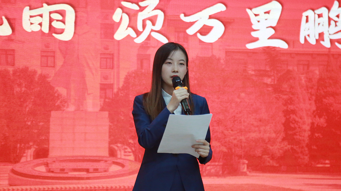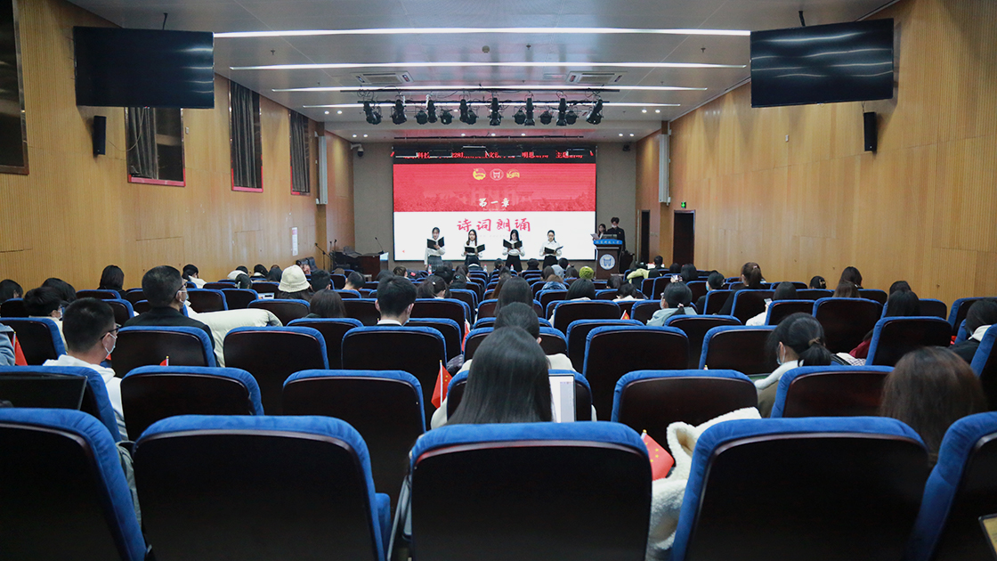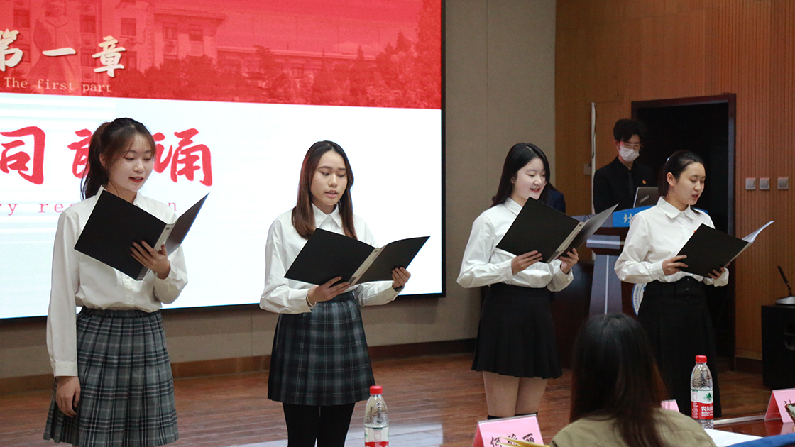 首先,四位同学带来诗词朗诵。她们用饱满的激情娓娓道出党带领人民走过水深火热的道路、无数共产党人用生命之光点亮星星燎原的故事。昂扬的语调表达着对党的厚重的敬意和炙热的爱意。她们发出“向着这火光,我们永远跟党走!”的铮铮誓言。