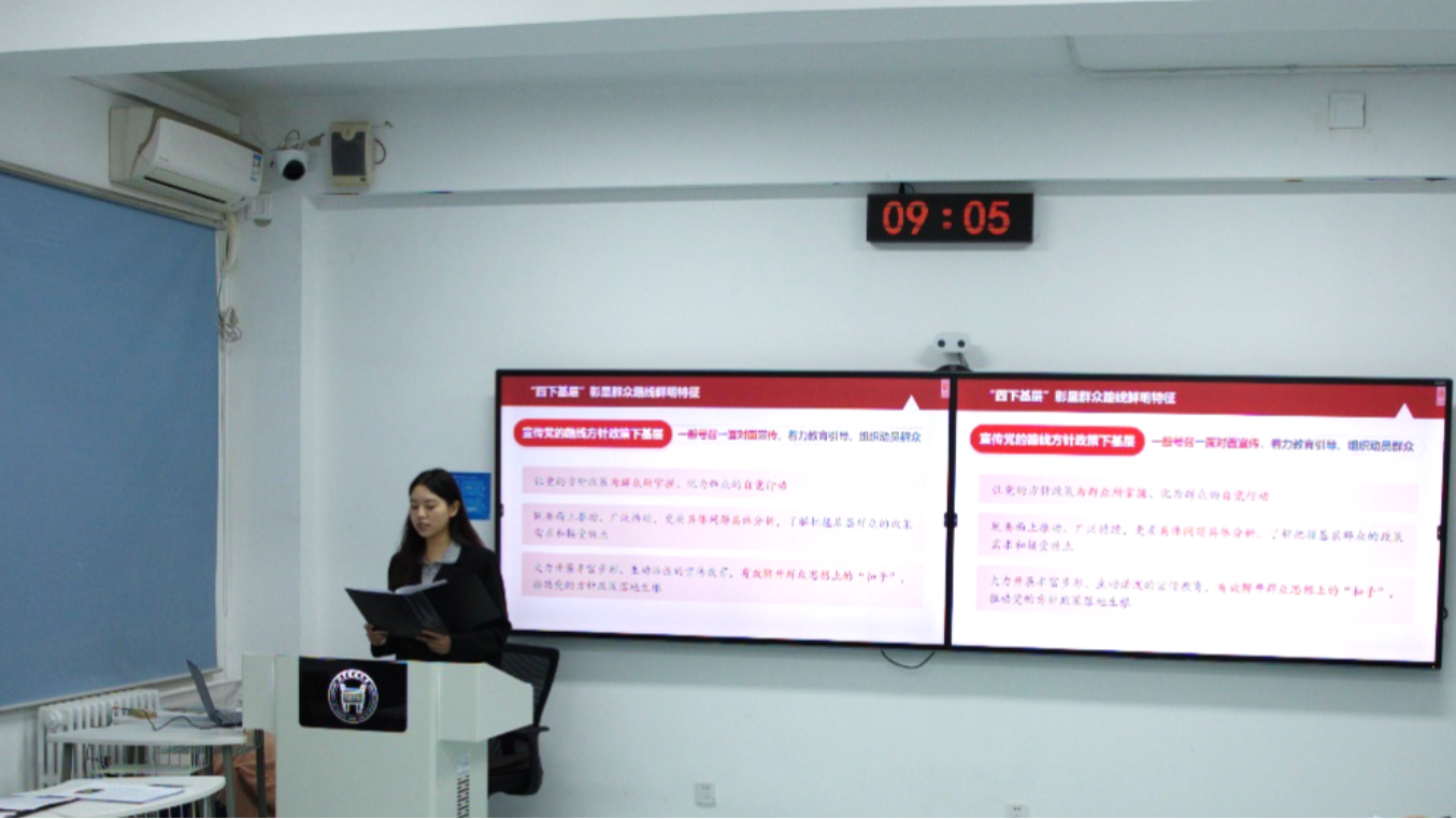 公共管理研2022级党支部书记井澈作为领学人带领全体党员学习体悟“四下基层”重要批示精神,结合基层实践案例深刻阐释、传承弘扬“四下基层”的优良传统。