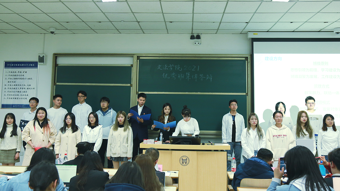 首先,由2018级的七个班级上场答辩。他们经历了大学三年的成长,在专业学习、工作经历以及科创竞赛等方面成绩突出,保研的傲人成绩更是令人赞叹。同时,作为即将走出校园的毕业生,他们也表达了文法学子对未来工作生活的美好展望。