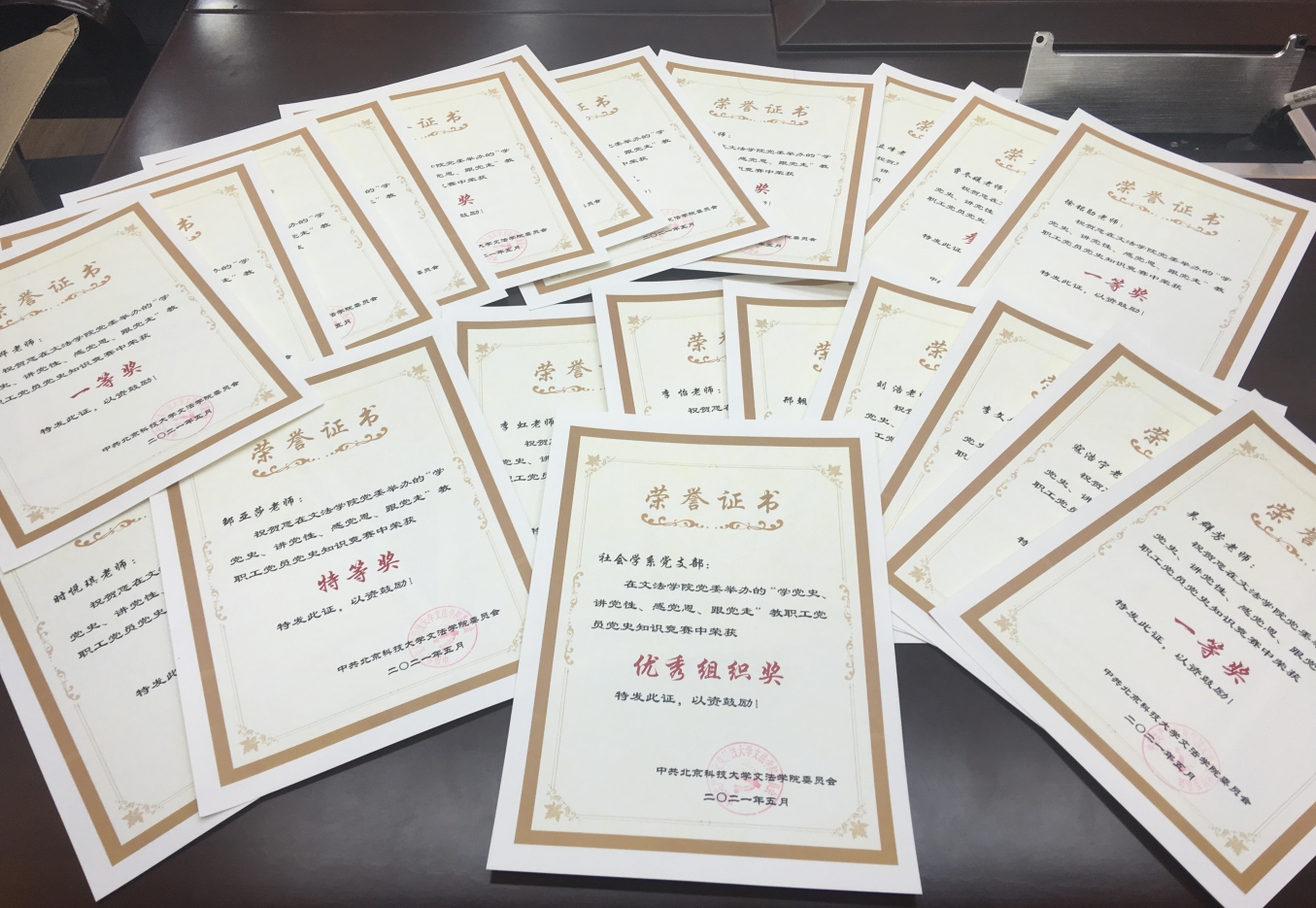 本次竞赛设置单选题和多选题,williamhill中国官方网站各教工党支部在各支部书记的带领和号召下,积极参加、踊跃答题,展示了过硬的理论素质和良好的精神风貌。经过公司党委统计,评选出了特等奖3名、一等奖4名、二等奖6名、三等奖4名、参与奖3名,社会学系党支部获优秀组织奖。6月3日,文法公司党委书记魏增产在文法楼210为获奖个人及组织颁奖。