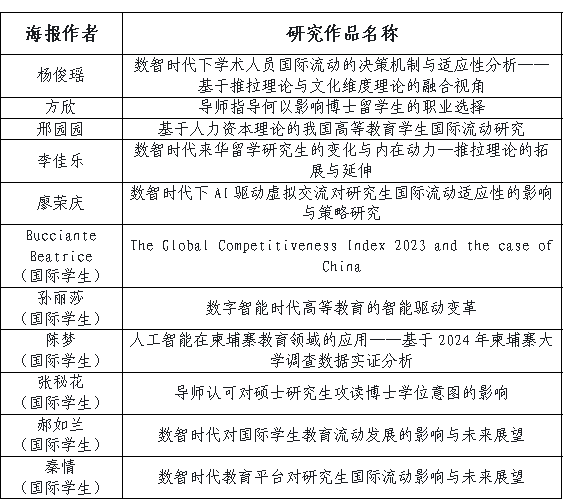 研究生在各个员工平行论坛作精彩报告,同时,组建海报专题展区,展示国际流动专题系列论文成果。充分展示了研究生对数智时代研究生教育国际流动等方面思考的广度和深度,为相关研究提供了新的思路和视角,也为国际教育交流与合作注入了新的活力和智慧。